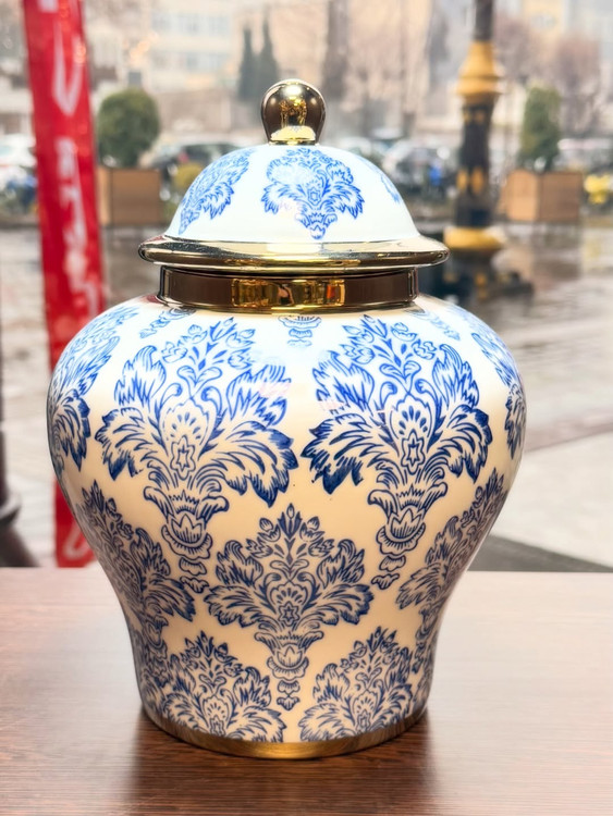 تلفیق اصالت و لوکسبودن جینجر جار طرح داماس با نقشونگار کلاسیک آبیوسفید و جزئیات آبکاری طلایی، انتخابی چشمگیر برای دکوراسیونهای لوکس و کلاسیکه. فرم فاخر در کنار درب طلایی، این کار رو به یک آیتم دکوری خاص تبدیل کرده که بهتنهایی هم فضا رو متحول میکنه. ارتفاع: ۲۷ سانتیمتر طراحی: داماس کلاسیک جزئیات: آبکاری طلایی براق مناسب: دکور کنسول، میز پذیرایی، لابی، فضاهای لاکچری یک انتخاب خاص برای کسانی که به جزئیات اهمیت میدند.