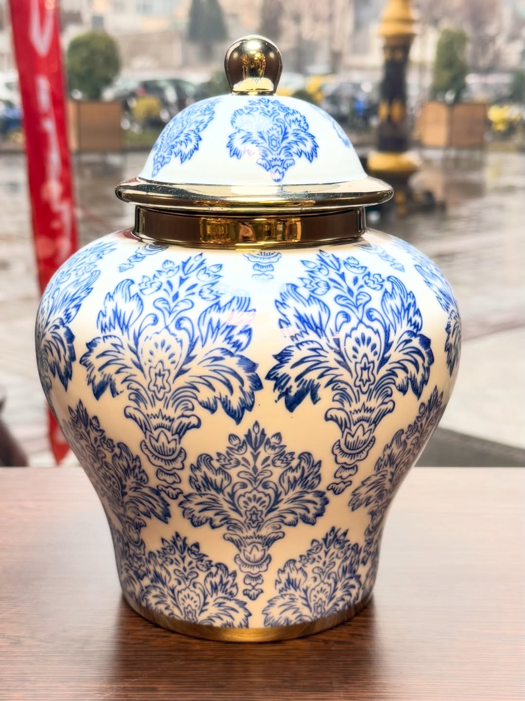 تلفیق اصالت و لوکسبودن جینجر جار طرح داماس با نقشونگار کلاسیک آبیوسفید و جزئیات آبکاری طلایی، انتخابی چشمگیر برای دکوراسیونهای لوکس و کلاسیکه. فرم فاخر در کنار درب طلایی، این کار رو به یک آیتم دکوری خاص تبدیل کرده که بهتنهایی هم فضا رو متحول میکنه. ارتفاع: ۲۷ سانتیمتر طراحی: داماس کلاسیک جزئیات: آبکاری طلایی براق مناسب: دکور کنسول، میز پذیرایی، لابی، فضاهای لاکچری یک انتخاب خاص برای کسانی که به جزئیات اهمیت میدند.